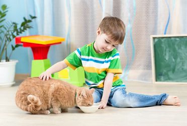 Cats can help children learn about caring for animals, social skills, and routines – especially if they help out at kitty's feeding time. Studies show that younger cats, in particular, become affectionate with the children in the family.